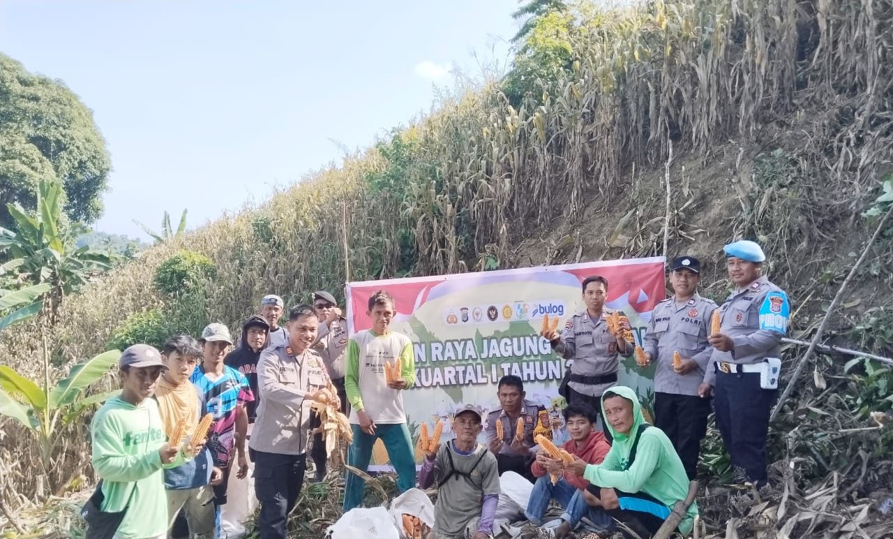 Panen jagung tersebut berlangsung di lahan pertanian milik warga dan dihadiri oleh aparat kepolisian, pemerintah desa, kelompok tani, serta tokoh masyarakat setempat.